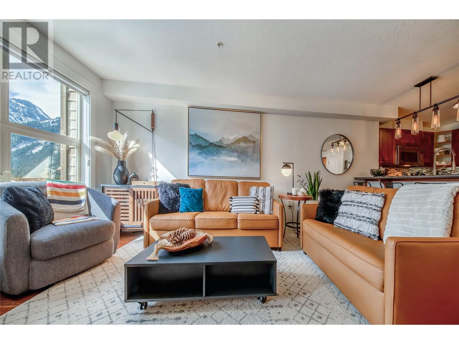 For the discerning buyer, a deluxe one-bedroom nested into Panorama's prestigious Summit building, offering unparalleled slopeside living. This residence redefines luxury, presenting an exceptionally spacious, open-concept design, ideal for apr?s-ski. From your private balcony, immerse yourself in views of the ski hill and resort pool, providing an idyllic setting for relaxation. Effortless access to Panorama's world-class amenities, from direct ski access to an array of fine dining establishments and boutique village core. This unit distinguishes itself with the rare inclusion of an in-suite washer/dryer. Abundant, thoughtful storage solutions are seamlessly integrated, including a generous owner's closet situated on the deck, a feature of remarkable rarity. The interiors reflect a commitment to modern comfort and elegance, featuring a renovated bathroom and a gourmet kitchen equipped with new appliances installed in 2023. This turnkey offering is luxuriously furnished with upgraded pieces, including a premium leather EQ3 sofa, stylish dinnerware, and curated decor, making it immediately ready for your mountain escape. Every detail has been considered to maximize space and enhance the living experience. This exceptional property represents a harmonious blend of luxury, convenience, and unparalleled views, offering a truly unique ownership experience in Panorama. Opportunities of this caliber are exceedingly rare. GST is applicable to the purchase price. (id:4069)